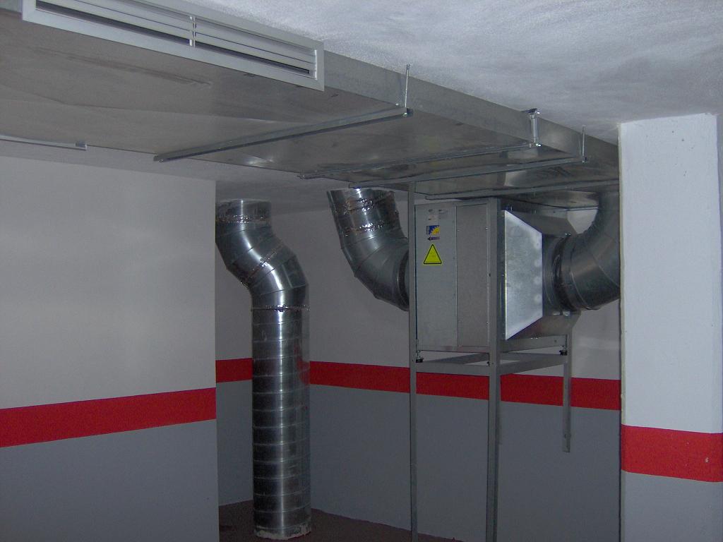 Fabricación y montaje de todo tipo de conductos en sección cuadrada, rectangular y redonda para ventilación y aspiración en chapa de hierro, galvanizado e inox., para garajes, naves industriales, etc.